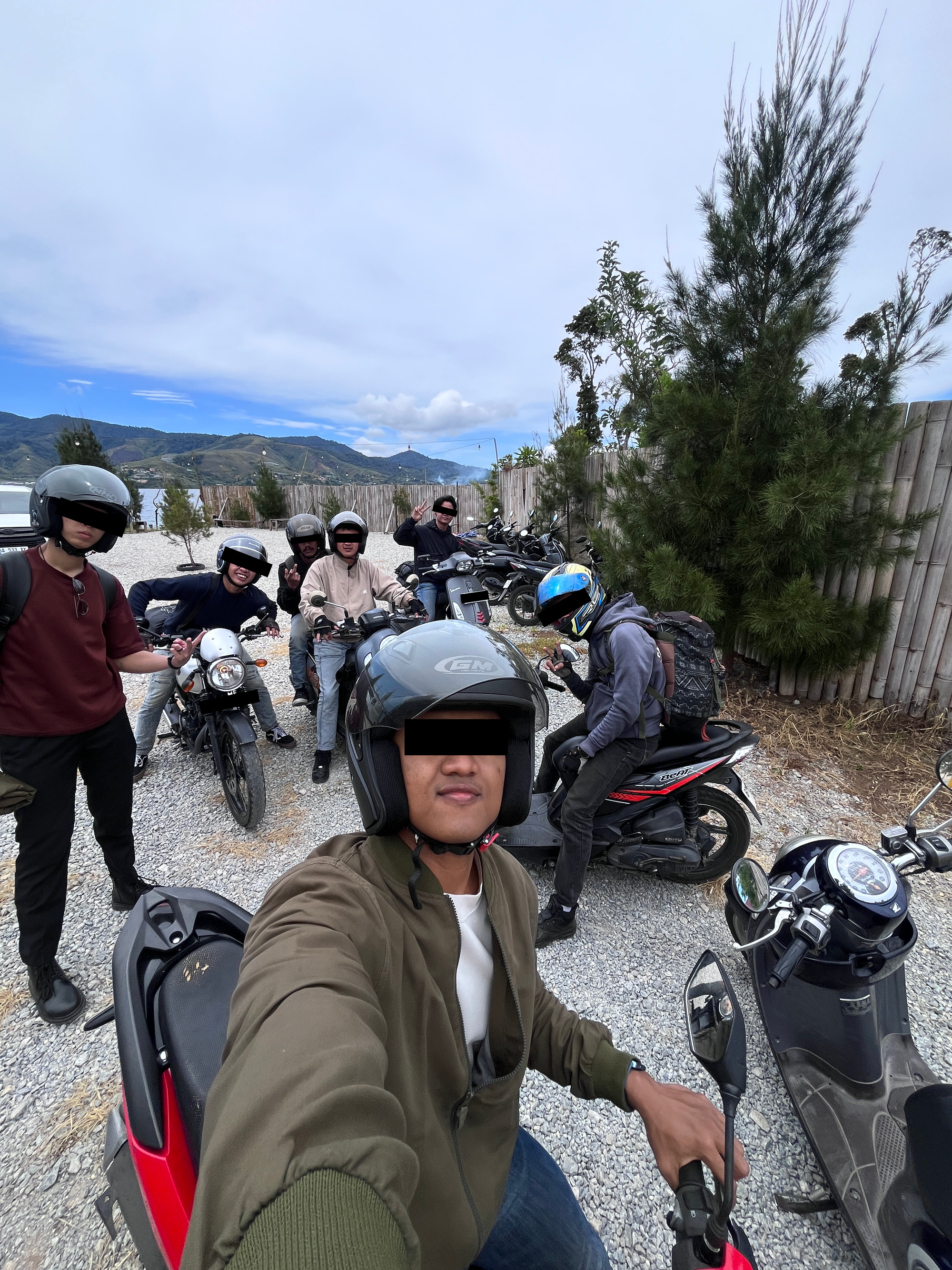 Di jalan, hal-hal kecil justru terasa paling melekat. Berhenti buang air di pinggir jalan sambil ditatap orang-orang yang lewat, atau melihat salah satu teman membawa motor tanpa rem. Bukan nekat, lebih ke percaya diri yang kelewat optimis. Nyali memang kadang tidak seimbang dengan logika.